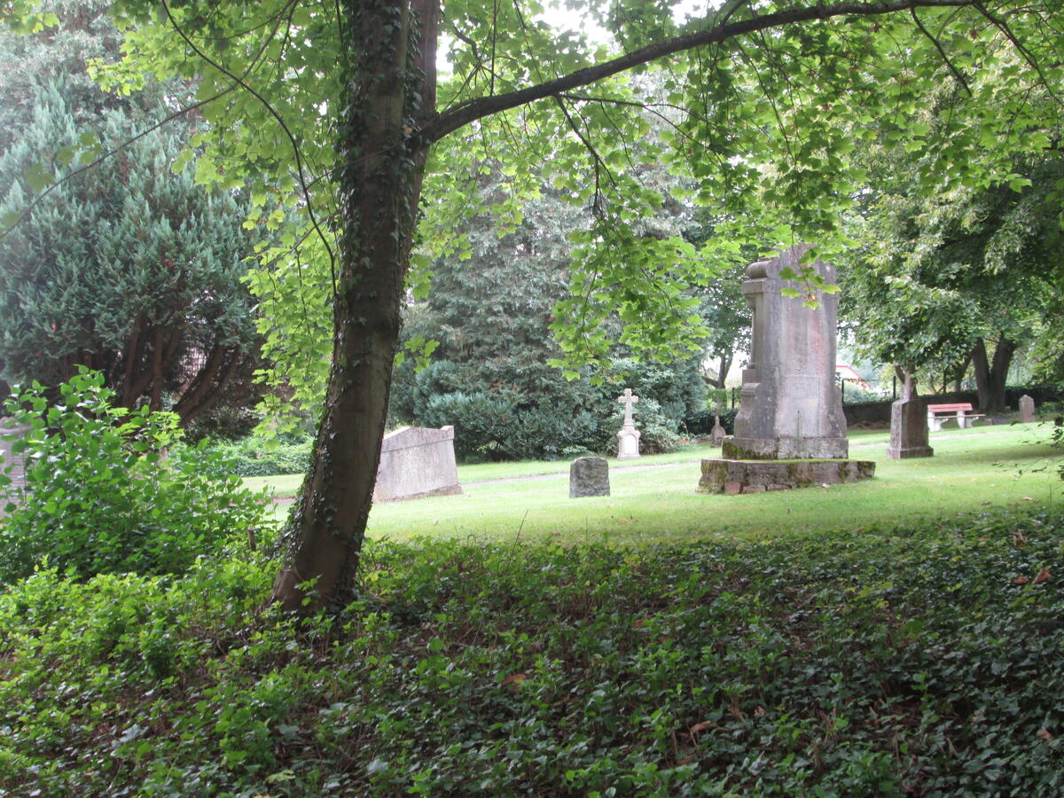 Auf dem alten Friedhof sind noch heute einige Grabsteine vom Beginn des 19. Jh. erhalten geblieben. Dazu gehört auch das aufwändig gestaltete Grabmal des Töpfermeisters Gottfried Lampe und seiner Frau Johanne, das auch an dieser Stelle des Ortes und scheinbar stellvertretend an die einst zahlreich in Duingen ansässigen Töpferfamilien erinnert. Deutlich älter sind außerdem einige aufrecht stehende Grabplatten, die in der Nähe der Kirche und an der Ostwand des Kirchengebäudes aufgestellt sind.