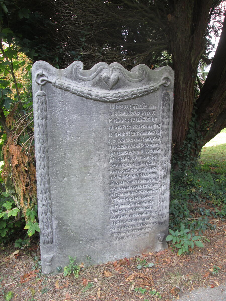 Christian Jahns ist auf dem alten Friedhof an der Duinger Kirche beerdigt (zu erkennen an einem großen Obelisken am Hauptweg), ebenso seine erste Ehefrau Marie Philippine. Eines der beiden gusseisernen Kreuze erinnert an sie. Auf der Rückseite des Obelisken liegt der Grabstein von Baurat Schmidt.