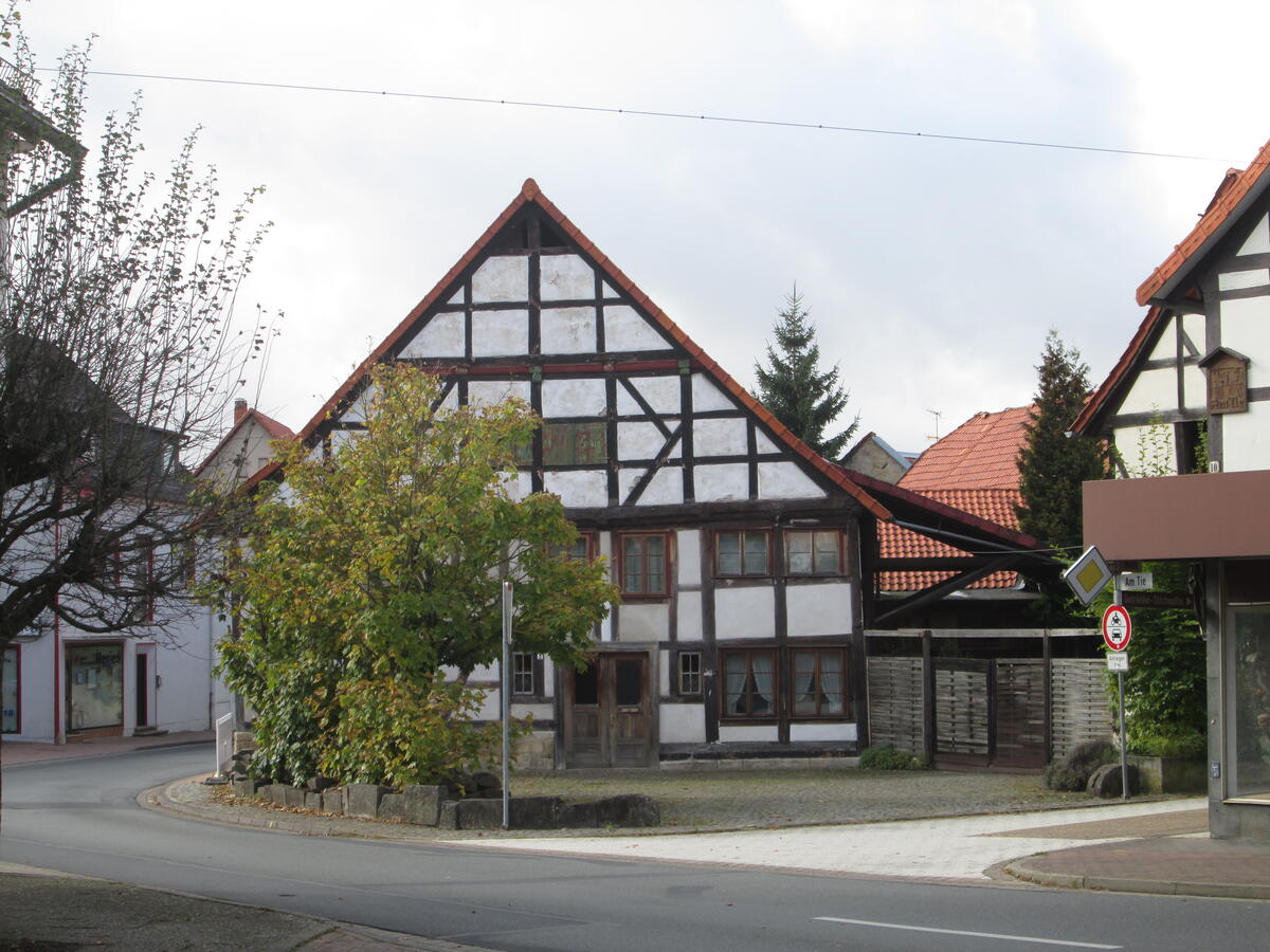 Auf diesem Grundstück der Alfelder Straße stehen Teile des ältesten Wohnhauses von Duingen, das von den Duingern auch „Tinne“ genannt wird. Die Tinne war ein festes Haus, das die „Ritter von Duingen“ bereits um 1233 bewohnten. Das Gebäude ist im Laufe der Jahrhunderte aus mehreren Gebäudeteilen zusammengewachsen, die teilweise noch über einem alten Gewölbekeller stehen. Die außen sichtbaren Fachwerkbalken sind mit renaissance-zeitlichen Holzprofilbalken verziert.