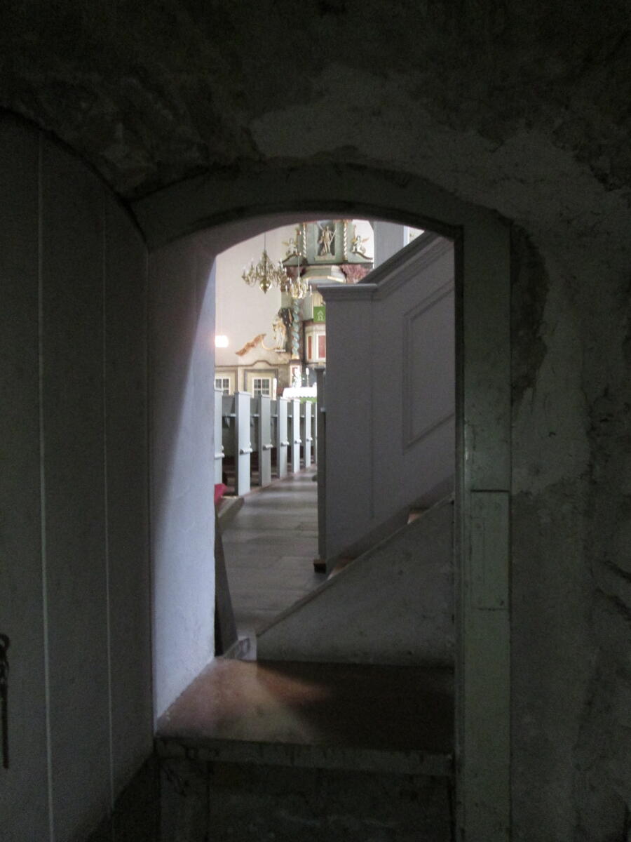 Eine Besonderheit der Katharinen-Kirche ist ein Geheimgang, der vom Glockengeschoss aus über eine schmale Steintreppe auf der Südseite des Kirchturms nach unten bis ins Kirchenschiff führt. Dort endet er hinter einer unscheinbaren Holztür.
