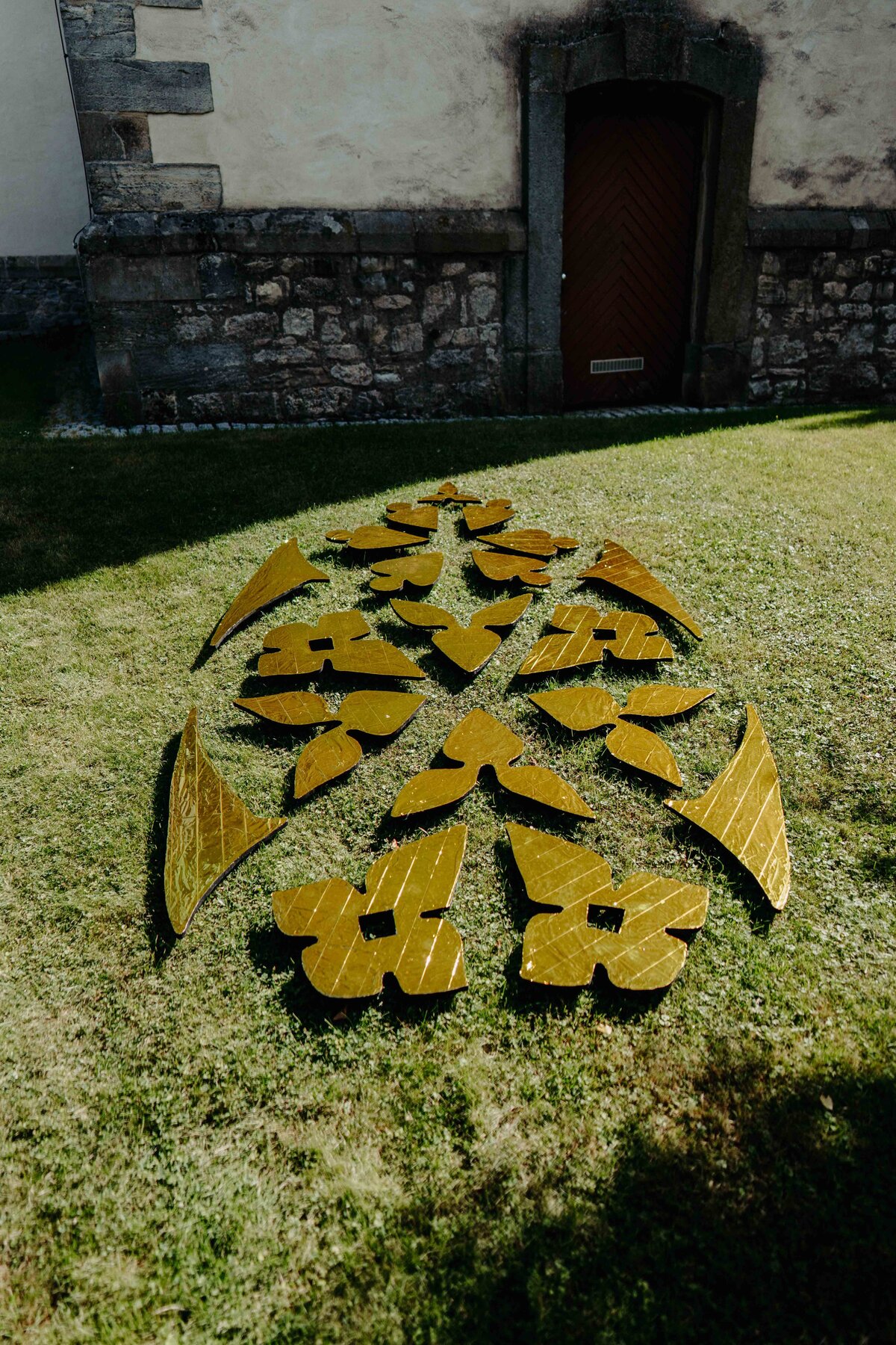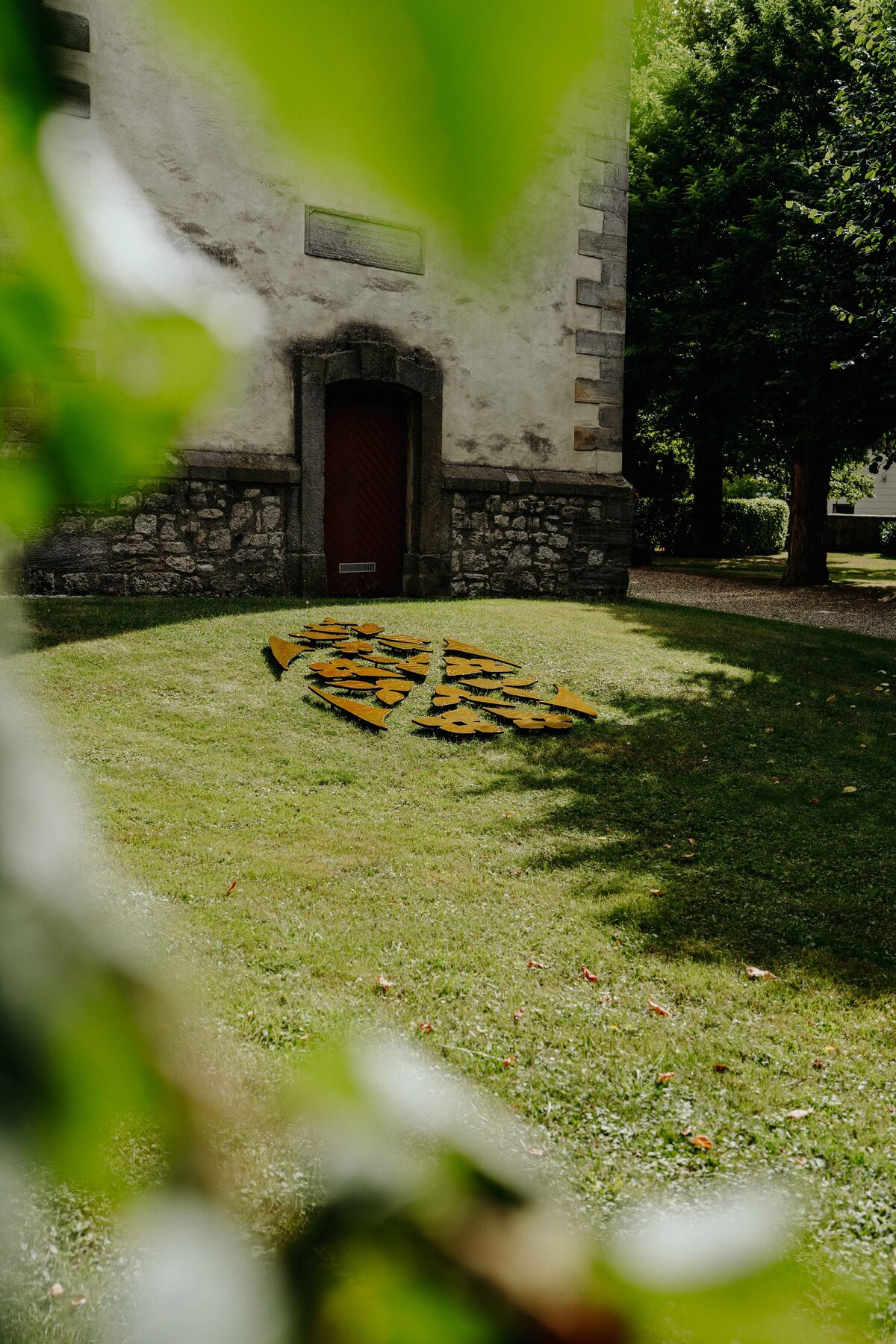 Vor der Kirche in Betheln entfaltet François Davin mit seiner Installation „Hier ist der Boden noch heiliger“ ein poetisches Spiel aus Licht, Ort und Bedeutung. Der Künstler reagiert auf die gegenüberliegende blinde Kirchenmauer, die keine Öffnung zulässt, als fehle ihr ein Buntglasfenster.
