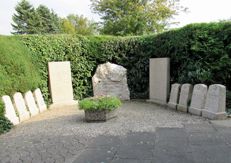 Mit einem aus mehreren Steinplatten bestehenden Ehrenmal erinnern die Deilmisser auf ihrem Friedhof an die verstorbenen und vermissten Mitbürger der beiden Weltkriege.