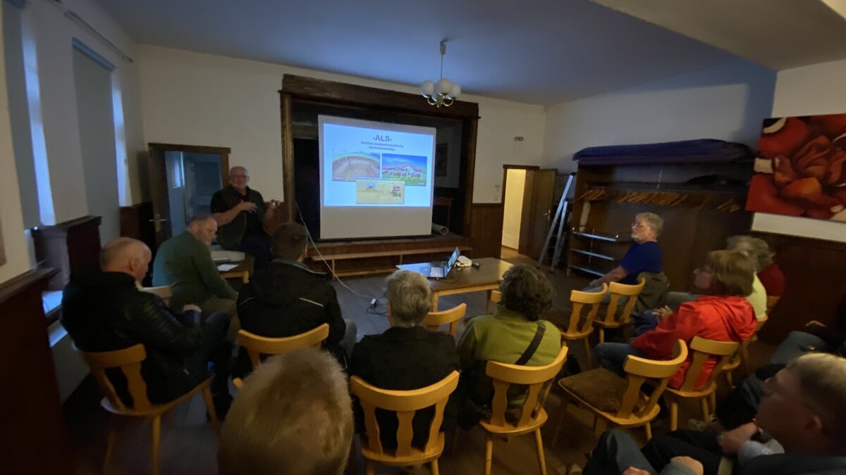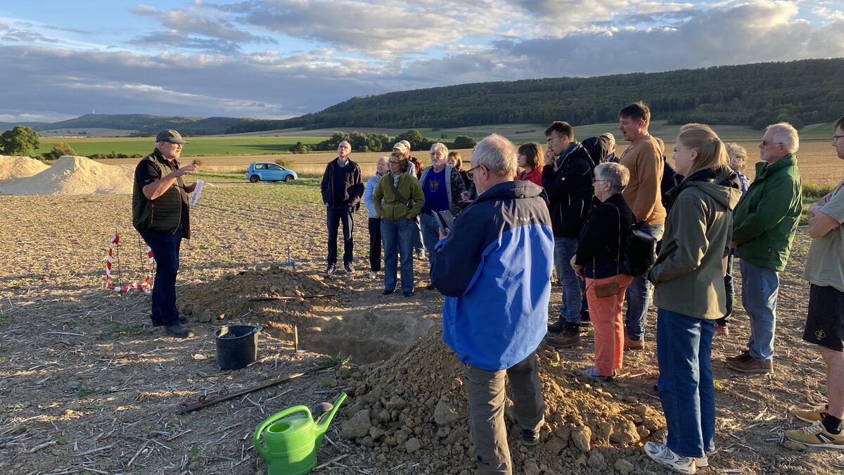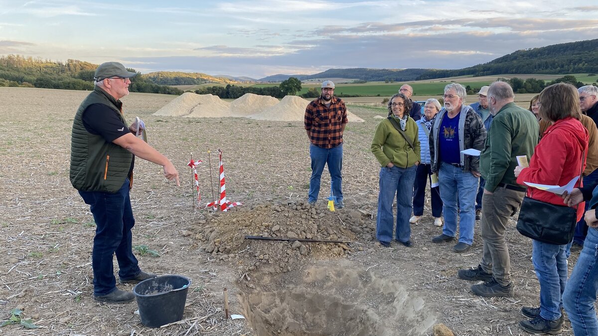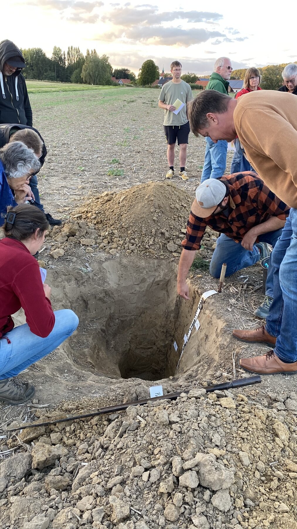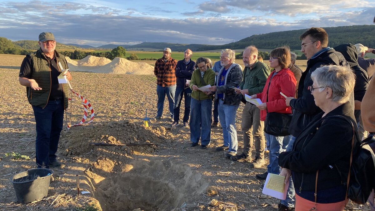 Der Vortrag zu den Hintergründen und dem Ablauf der Bodenschätzung erfolgte sowohl im Saal mit theoretischen Erläuterungen als auch im Freien inklusive fachlicher Ansprache an einem Bodenprofil.