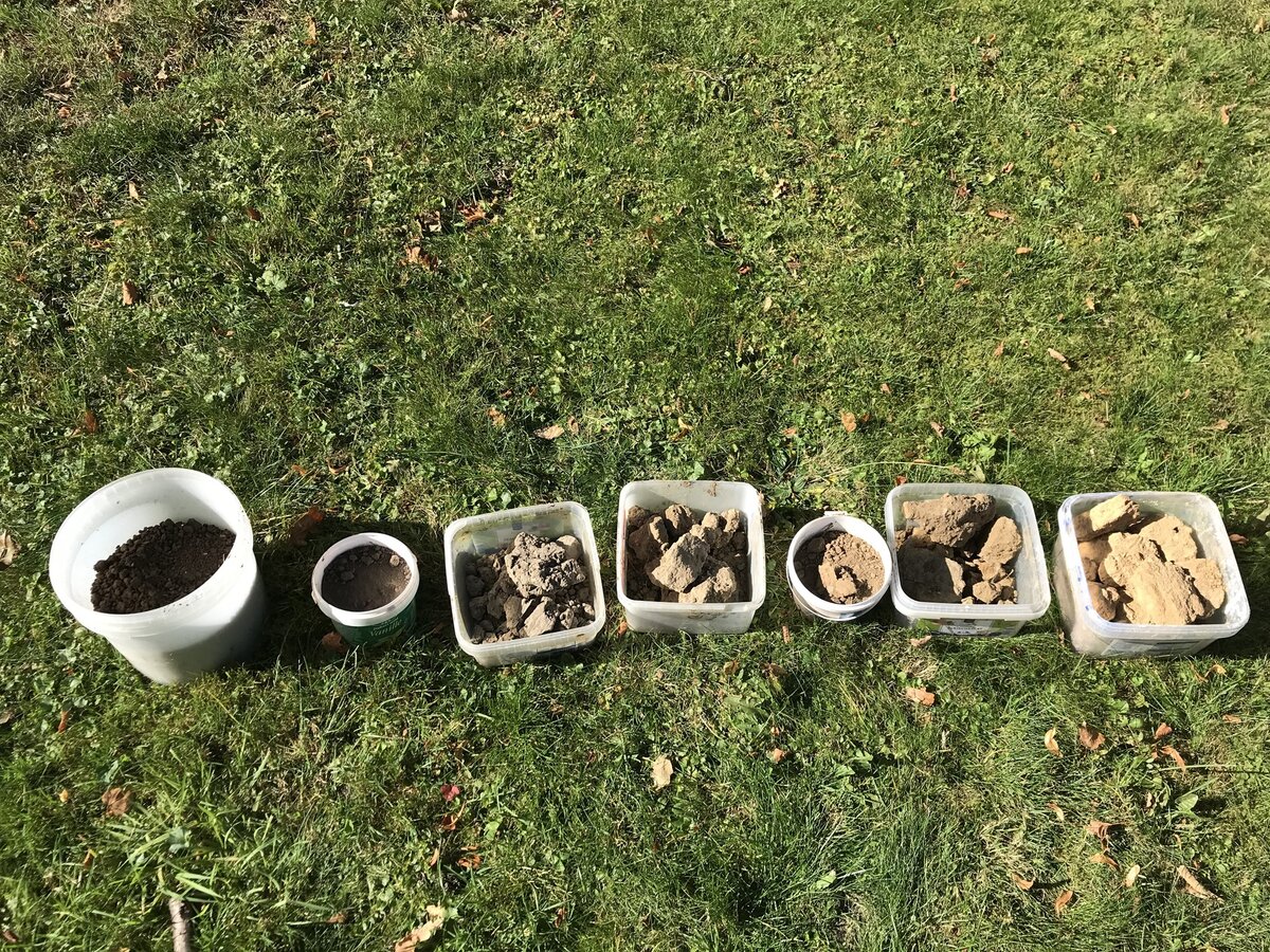 Hier waren die 'Erdhäuser' aus Latten gebaut, die mit wetterfesten Vliesen bespannt wurden. Kinder bemalten diese nun mit verschiedenen Erden aus der Region.