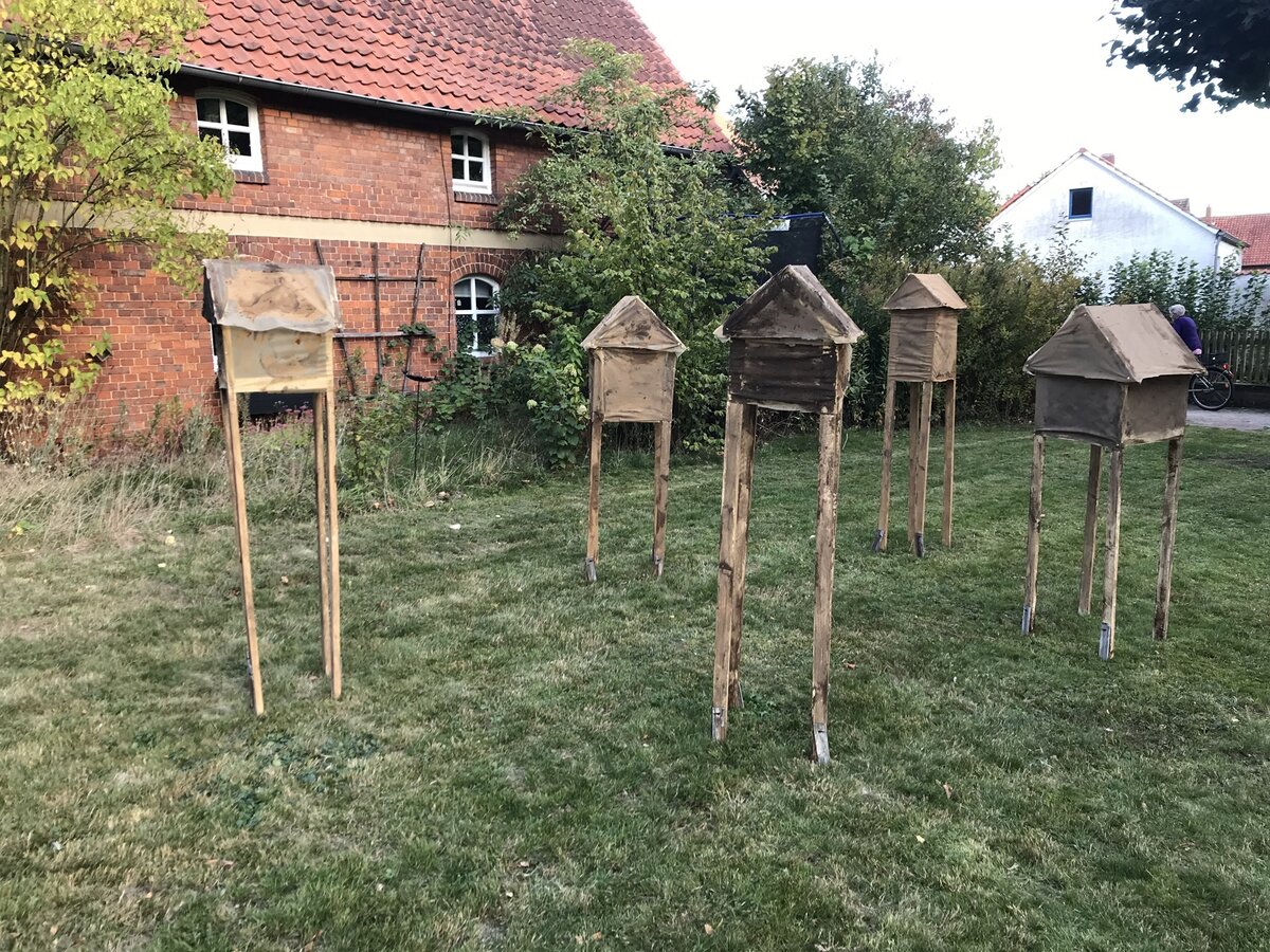 Aufgestellt wurden die 'Erdhäuser' dann an der Garmissener Kirche. Organisiert wurde die Aktion u.a. von der Ortsbürgermeisterin Beate Senholdt.
