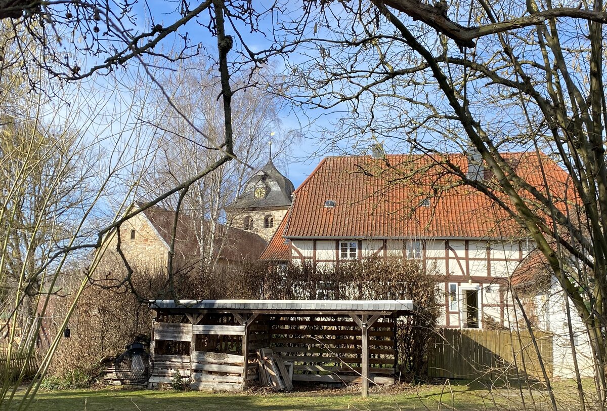 Zweitgrößtes Gebäude auf dem Kirchhof ist das zweigeschossige ehemalige Küsterhaus in Fachwerkbauweise über einem Sandsteinquadersockel mit leicht vorkragendem Obergeschoss an den Längsseiten.