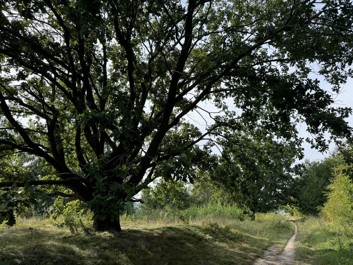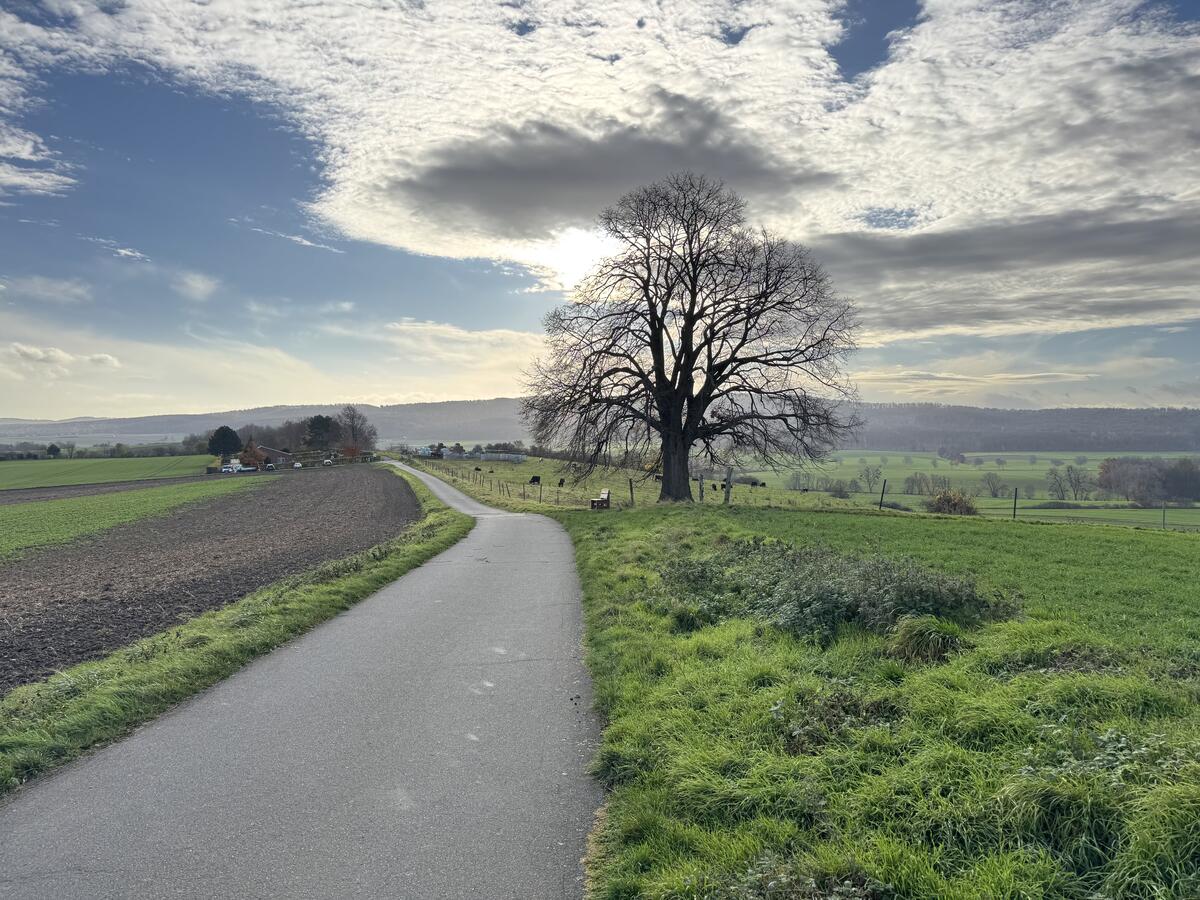Von der Dorfmitte geht es über die Heinrich-Heine-Straße in die Eichstraße bergan bis zum Ende des Dorfes. Rechts beginnt ein Spazier- und Radweg, der zum Hildesheimer Stadtteil Ochtersum führt und an diesem Weg steht die mächtige Linde. Ein romantisches Plätzchen, wo schon so mancher Heiratsantrag gemacht wurde. Eine Bank darunter lädt zum Ausruhen ein und bietet einen grandiosen Ausblick auf die Umgebung, besonders schön auch zum Sonnenuntergang. Einfach magisch!