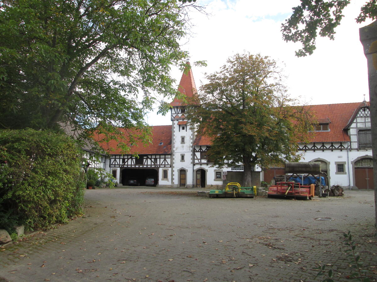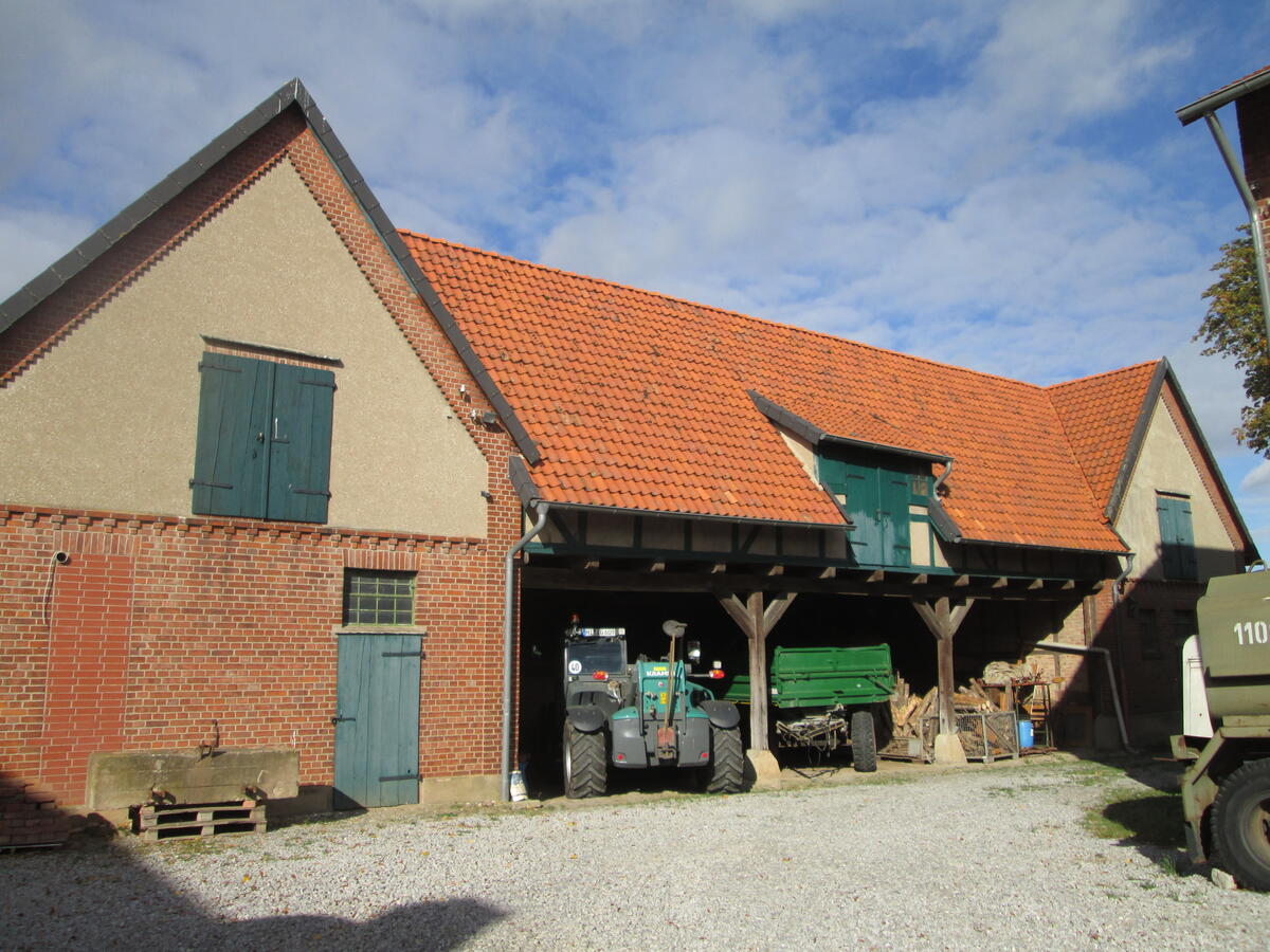 Die Wirtschaftsgebäude sind zum großen Teil noch erhalten und werden für den landwirtschaftlichen Betrieb genutzt, eine große Scheune links der Hofeinfahrt enstand später neu. In der Hofmitte ist noch das kleine Gebäude der ehemaligen Schmiede erhalten, das in naher Zukunft auch als Wohnhaus genutzt werden kann.