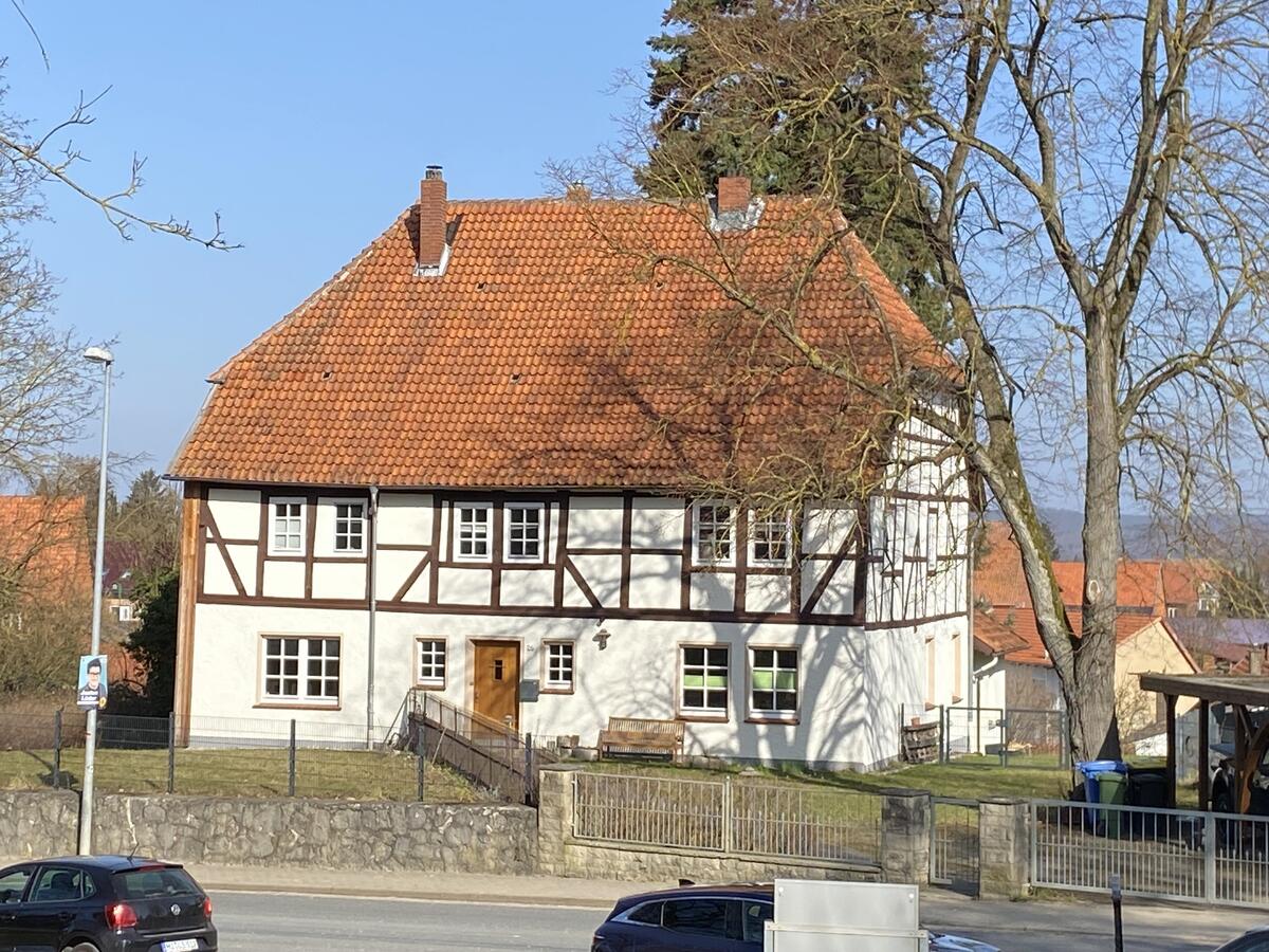 Nördlich und der Kirche gegenüber liegt das noch heute von einer Pastorenfamilie genutzte Pfarrhaus. Das traufständige zweigeschossige Gebäude mit einem Halbwalmdach und einem Obergeschoss in Fachwerk wurde 1753 errichtet. Das Erdgeschoss ist massiv erneuert worden.