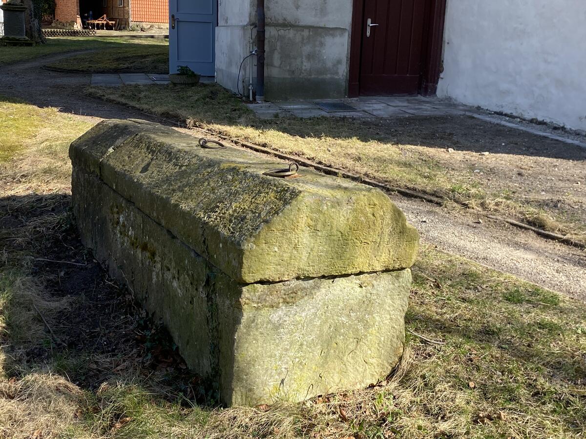 Letztes Zeugnis der Familie von Eilbere in Eberholzen mag ein alter Steinsarkophag auf dem Kirchhof sein.