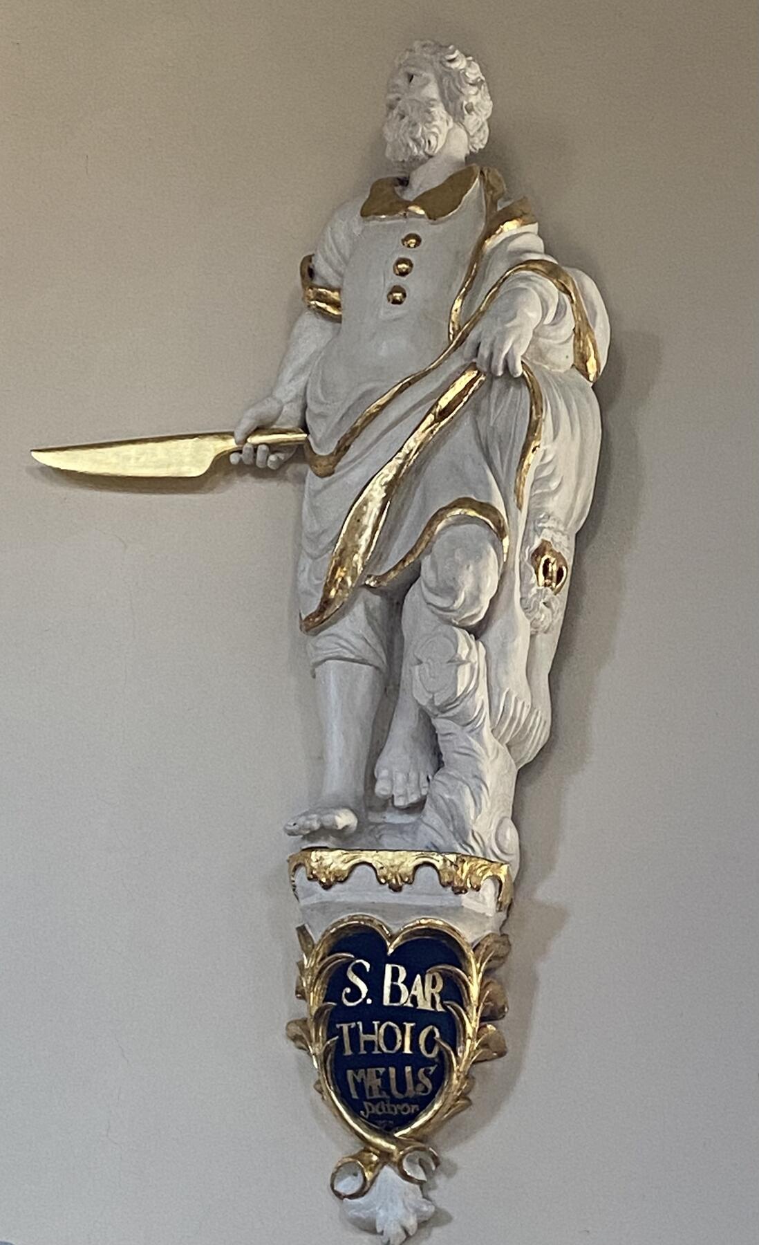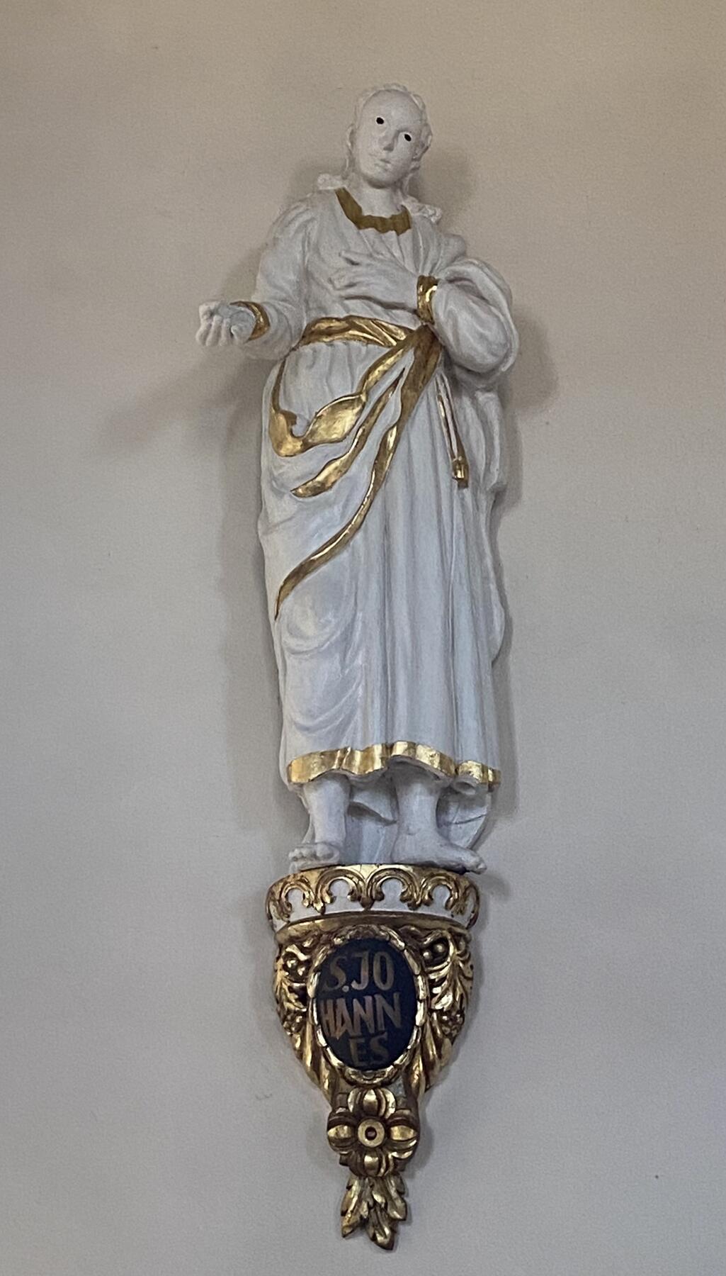 Aus der gleichen Werkstatt wie die Figuren des Altars stammen die beiden Apostelfiguren des Hl. Bartholomäus und des Evangelisten Johannes an der Südwand der Kirche. Ebenfalls auf dieser Seite hängt ein Ölbildnis des Eberholzener Pastors Henr. Steph. Kuhlemann.