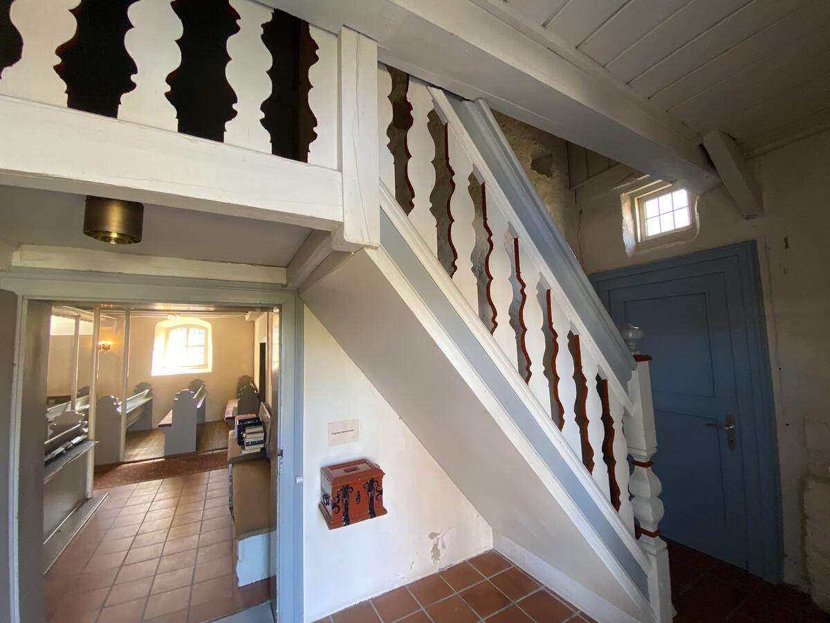 Der Zugang zur Orgelempore ist über eine Treppe im Eingangsbereich möglich.