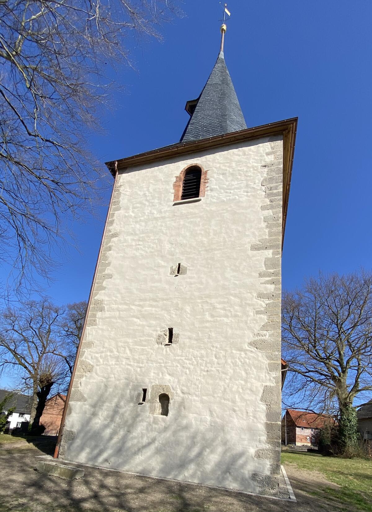 Unter der Orgelempore befindet sich eine Tür, durch die der mittelalterliche Kirchturm zu betreten ist. Da der Zugang zum Turm in der Regel für Kirchenbesucher nicht möglich ist, können an dieser Stelle nur einige in die Erdgeschosswände eingemauerte Menschenschädel erwähnt werden, deren Vorderseiten abgeschlagen wurden. Bis heute konnte nicht geklärt werden, aus welchem Grund und seit wann sich die Schädel hier befinden. Möglicherweise deuten sie auf einen heidnischen Bestattungsbrauch hin.