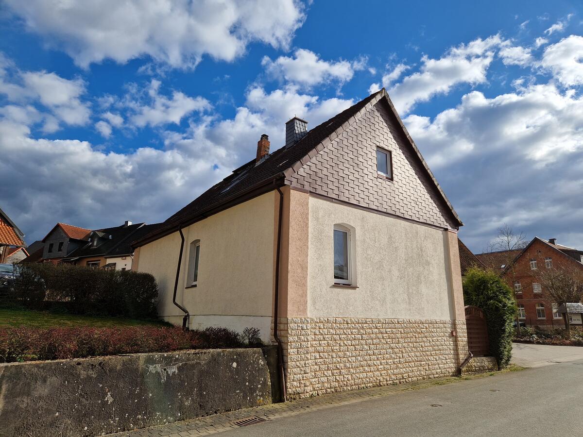 Eckgrundstück Dammstraße /Wendernstraße (Nr. 1) – das am Hang errichtete ziegelmassive Haus war das zweite Schulhaus von Eberholzen. Hinter den verkleideten Giebelflächen befindet sich Fachwerk. Der eingeschossige Bau wurde um 1880 gebaut.