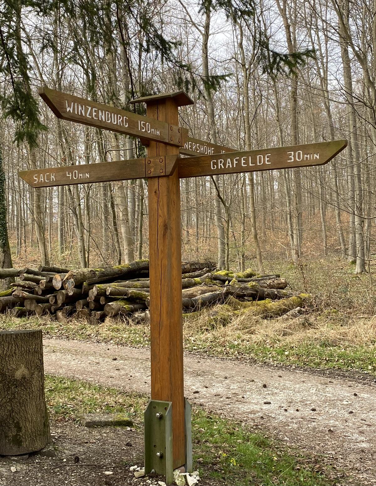 Vielen Menschen im Raum Hildesheim ist der historische Rennstieg als Wanderweg bekannt. Ein Teilstück dieses Weges führt auch durch den Grafelder Forst. Bereits in den Jahren vor 1900 stand an der Wegkreuzung im Wald zwischen Winzenburg, Sack, Grafelde und Wernershöhe ein Wegweiser, der im Laufe der Zeit immer wieder mal Schaden genommen hat, aber regelmäßig instand gesetzt und wieder aufgestellt wurde. Uns so haben vor nicht allzu langer Zeit die Grafelder Forstleute an traditioneller Stelle ein neues Wegekreuz mit frisch geweißten Schriftzügen aufgestellt.