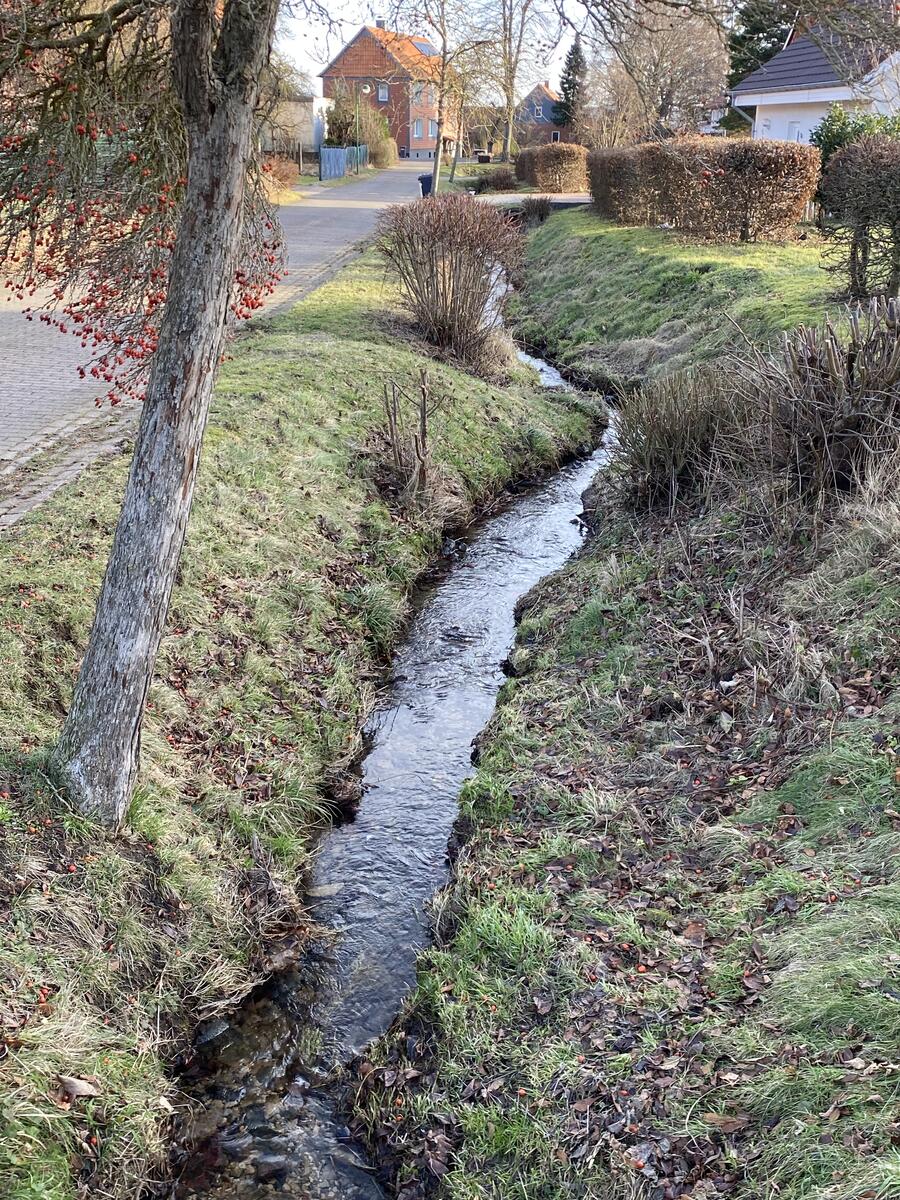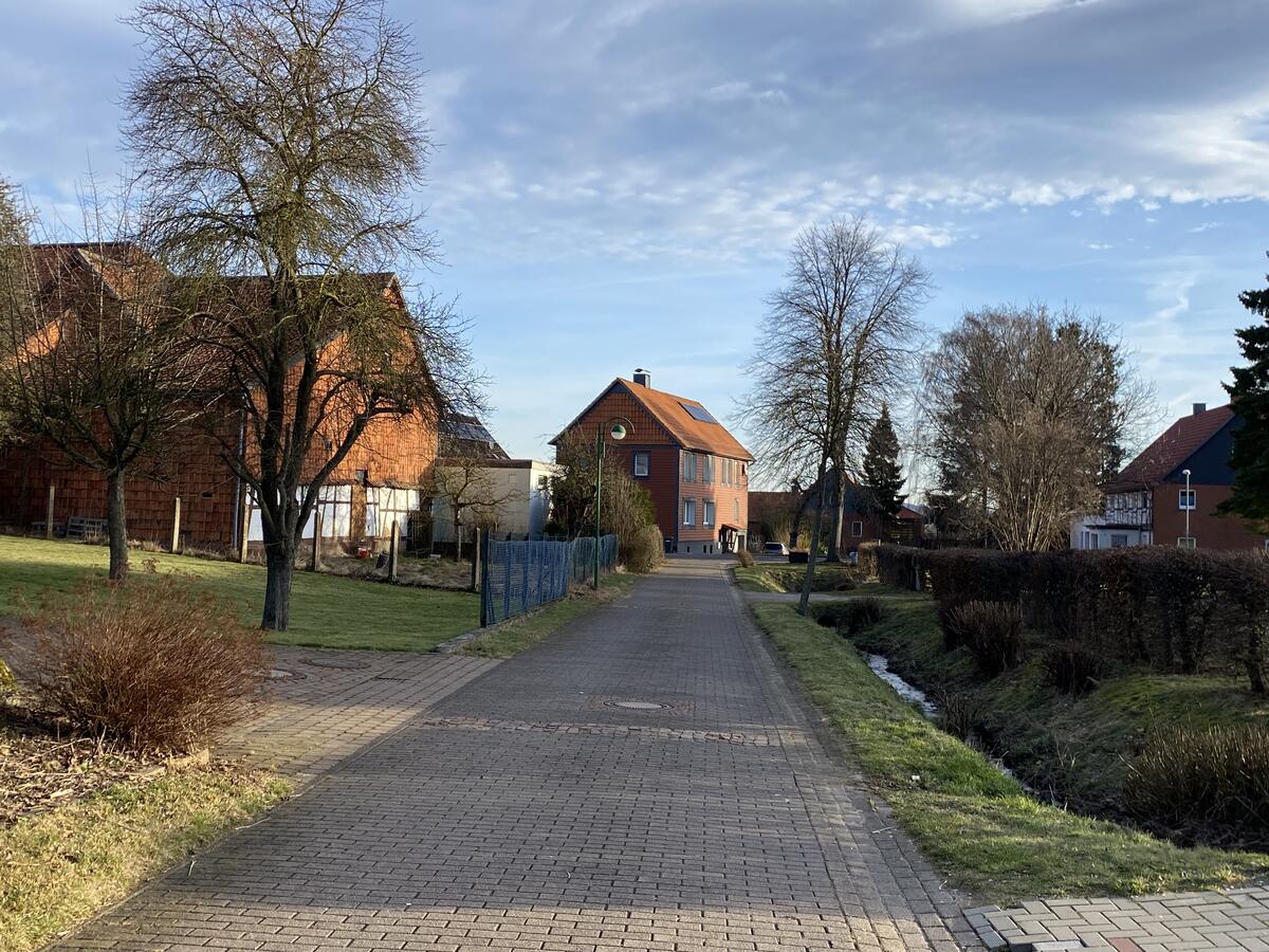 Bei der Besiedlung achtete man offensichtlich darauf, dem durch die Talsohle des Ortes verlaufenden Bach, der bei den Dorfbewohnern noch heute „Selle“ genannt wird, nicht zu nahe zu kommen und der Gefahr einer Überschwemmung auszuweichen. Aus diesem Grund entstanden dominierende Häuserreihen entlang zweier noch heute bestehender Straßen (Krugkamp im Norden und Küchengarten im Süden), deren Flächen zum Bach hin nur durch Gärten genutzt wurden. Die Talsohle war durch einen den Bach begleitenden Weg (heute Lindenweg) erschlossen. Dieser stieß an der Stelle, an der früher das Gutshaus stand, an die Gutsgrenze und nahm dort deshalb eine Biegung im rechten Winkel und endete an der nördlich gelegenen Dorfstraße.