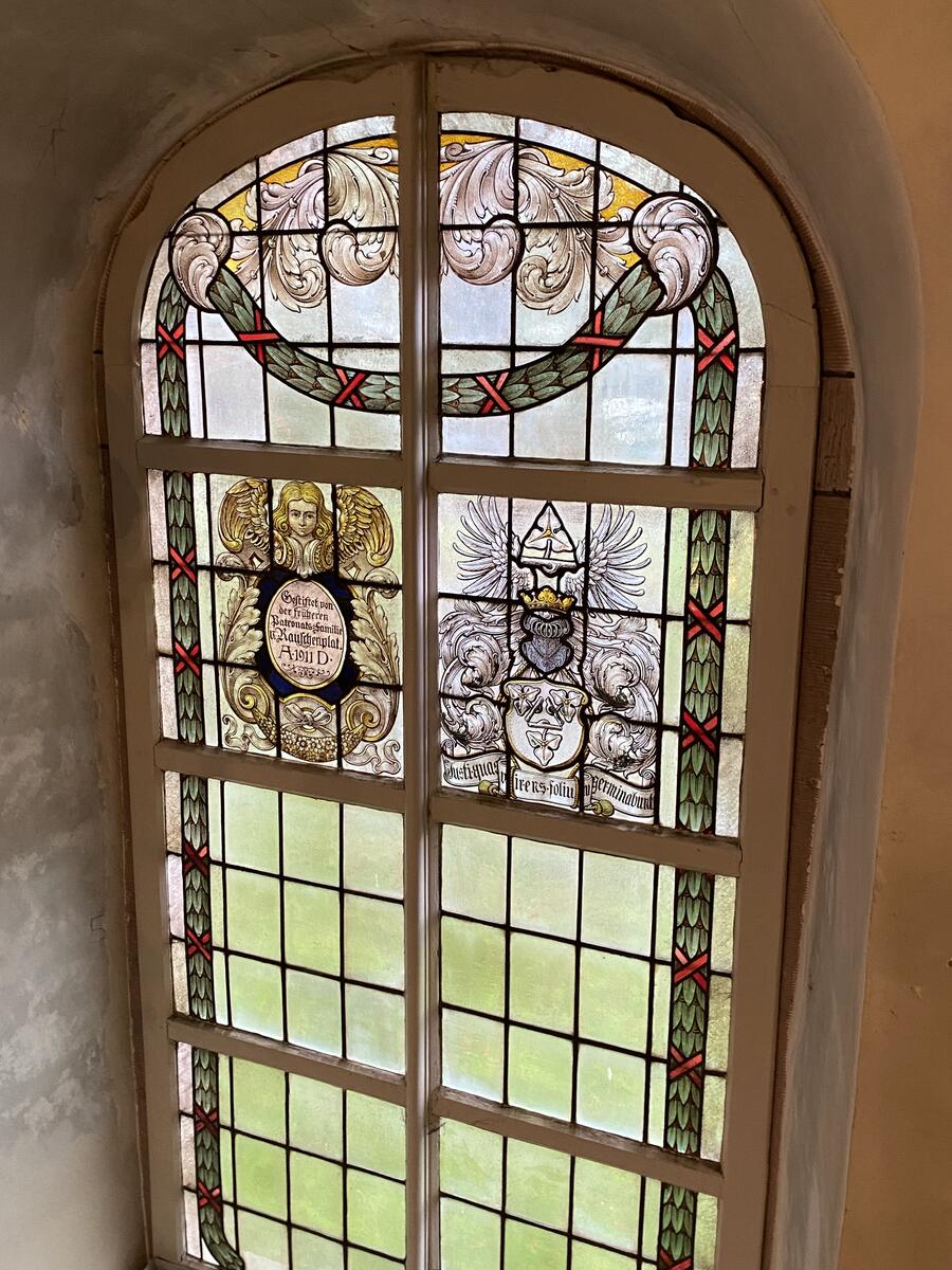 Aus diesem Jahr stammen auch zwei farbig gestaltete Fenster mit Wappen. Auch diese sind Stiftungen der Patronatsfamilien von Rauschenplat und von Steinberg und wurden in der damals bedeutenden Werkstatt der Glasmaler Hubert Henning und Johann Andres in Hannover angefertigt.