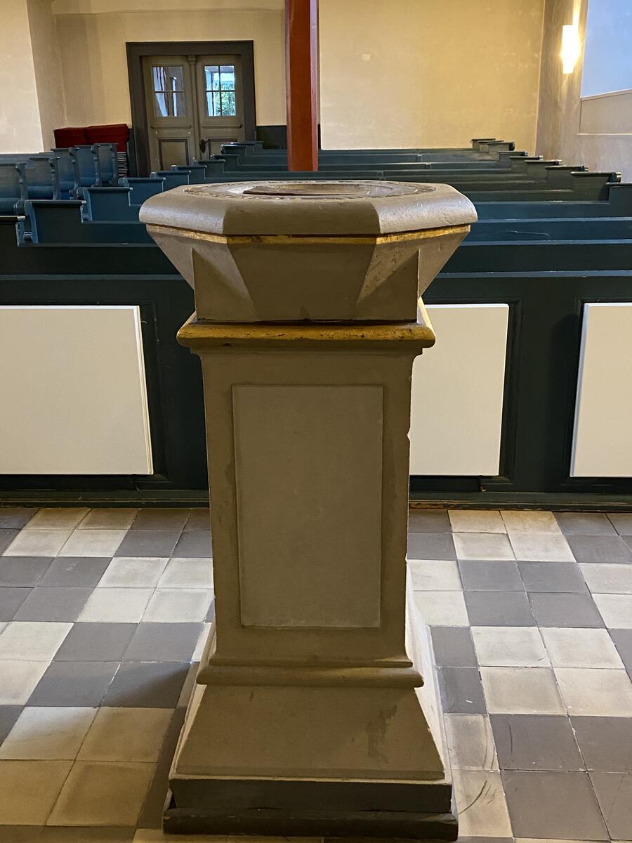 Die Sellenstedter Kirche verfügt außerdem über einen steinernen Taufstein jüngeren Datums mit einsetzbarer Zinnschale.