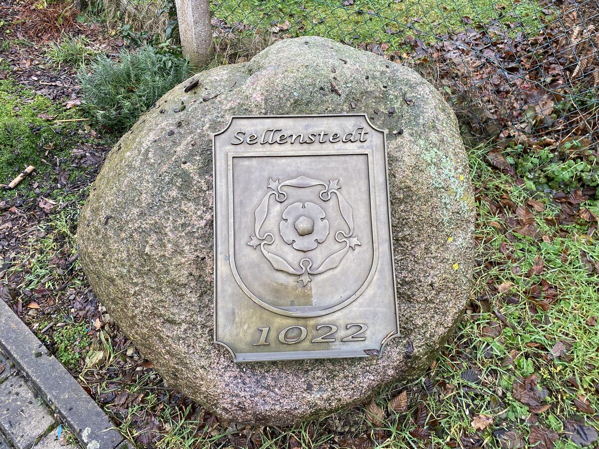 Am Dorfgemeinschaftshaus am Lindenweg stellten die Sellenstedter 2022 im Jahr des 1000-jährigen Dorfjubiläums einen Gedenkstein mit Wappen auf.