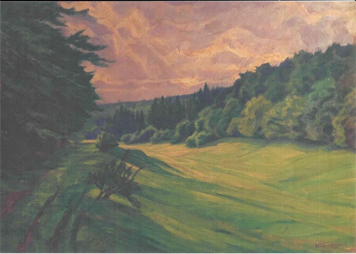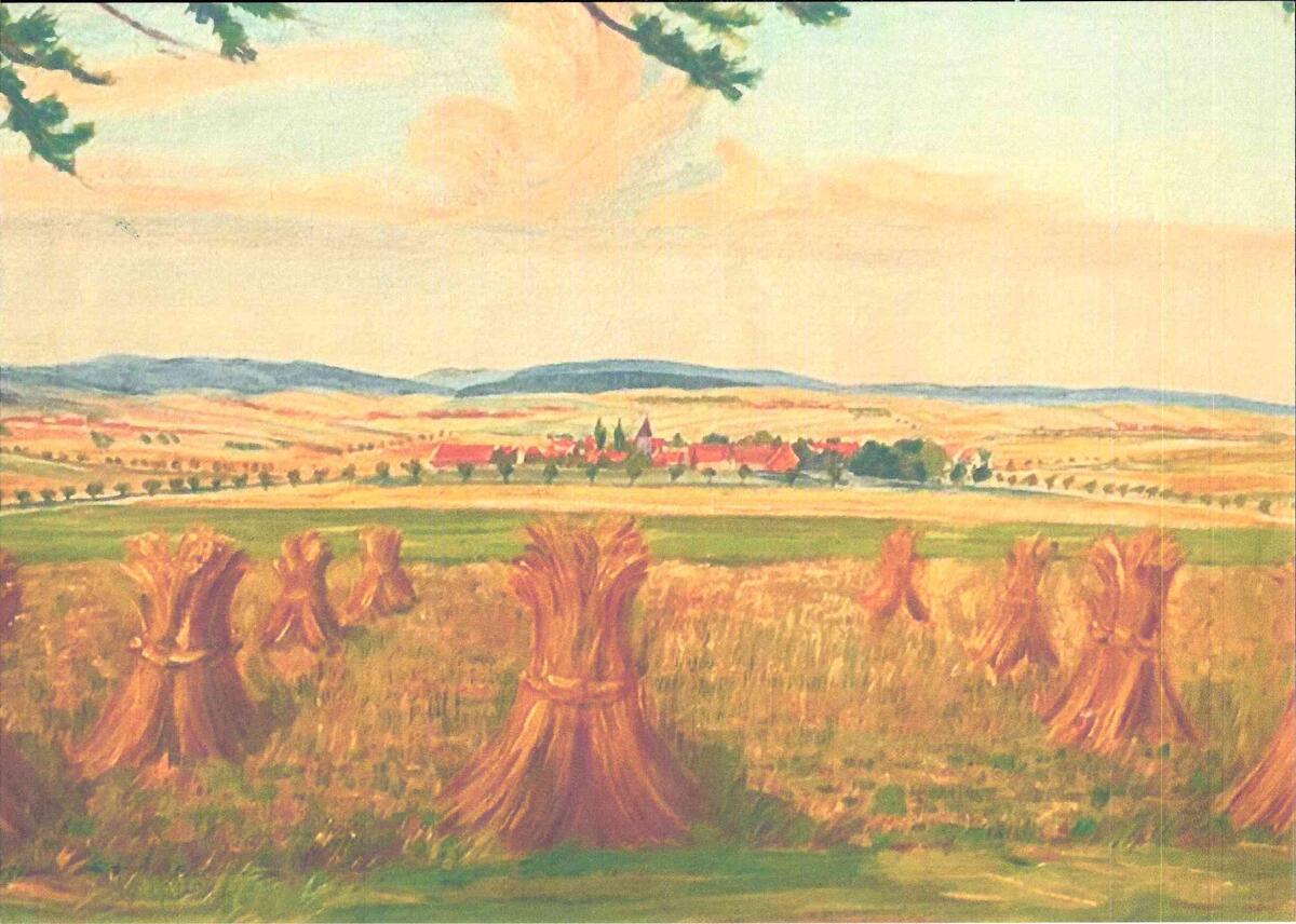 1943 und 1945/46 entstanden im Auftrag des Gutspächters Willers zwei Gemälde von Franz Kuhlmeyer, mit dem der Künstler den Blick vom Waldrand über das Dorf und die Sellenstedter Dehne festhielt. Schaut man sich diese Gemälde genauer an, so ist in der Getreidegarbe in der Bildmitte des einen noch der dunkle und spitze Schattenwurf des Lusthauses, vor dem der Künstler seine Staffelei damals aufstellte, zu erahnen.