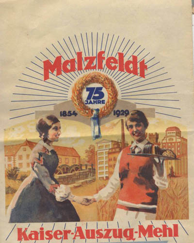 "Die Sarstedter Wassermühle war die erste Handelsmüllerei im Königreich Hannover. Es muss recht schwierig gewesen sein, die Bäckermeister jener Zeit davon zu überzeugen, statt Getreide Mehl einzukaufen. Die Bäcker kauften damals ihr Getreide selber vom Landwirt oder Händler und ließen es in der nächsten Mühle mahlen. Einen großen Boden voll Korn liegen zu haben, gehörte zum Privileg eines Bäckermeisters. Schnell haben die Bäcker jedoch ihre ablehnende Haltung beiseite geschoben und verbackten von nun an nur noch "Malzfeldt-Mehl"." (Stadtheimatpfleger Werner Valbruch)