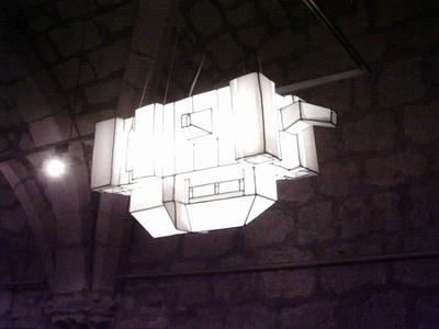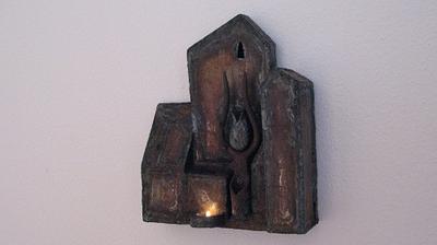 Korrespondierend sucht er die Überwindung der Schwerkraft in Konstruktionen aus Eisendraht, die, mit Papier überzogen und von innen beleuchtet, zu schweben scheinen.Das Ergebnis sind frei im Raum stehende Schreine und an der Wand platzierte Andachtsobjekte, die zur Versenkung und zur Erforschung innerer Räume einladen.